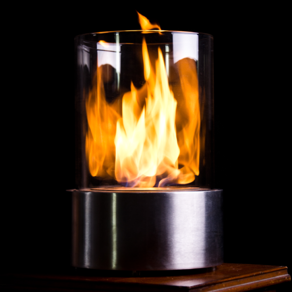 Tipo: Autoportante sin fijaciones Materiales: Acero inoxidable y vidrio Medidas (m): Diám. 0,26 x Alt. total 0,37 Peso: 8 kg. Quemador: Cilíndrico inox. Capacidad: 2.0 litros Autonomía y calor entregado: 5 horas, 2021 Calorías/hora
