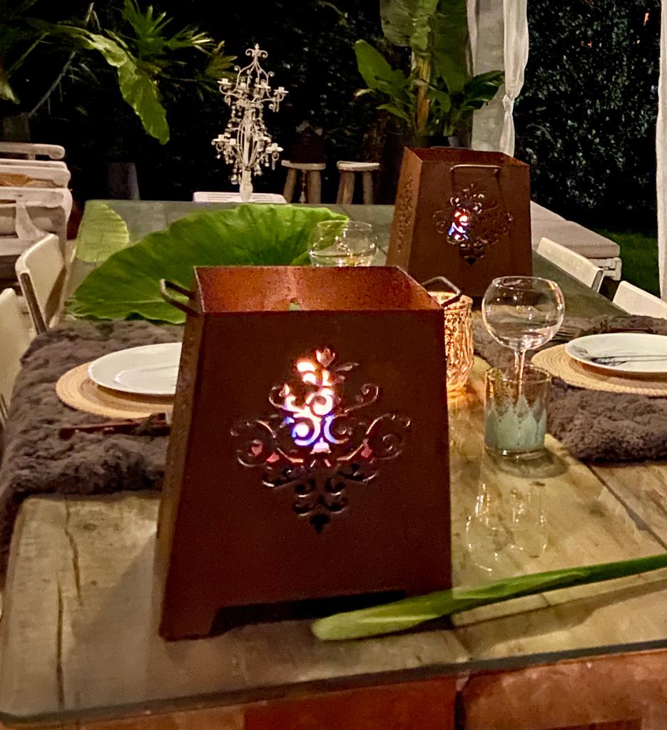 Descripción: Medidas Alto 29cm Ancho Base 27cm Ancho Boca 22cm Quemador 8hs de autonomía Colores oxido y negro mate