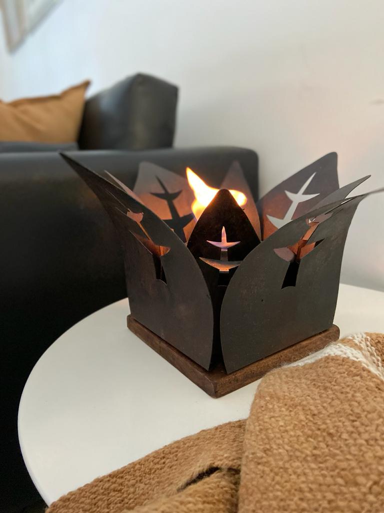 Base 23 x 23cm Ancho arriba 43cm Altura total 30cm Color oxido Quemador Mediano de 8hs de autonomía